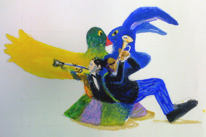 This large mosaic sculpture, created for Grand Center in St. Louis, stands 8 feet high and 13 feet long, and is made of a steel armature with fiberglass and mosaic coating. “After Hours” is a tribute to the struggle and proud history of St. Louis Jazz and Blues. Louis Armstrong and Bix Beiderbecke are portrayed on one side of the sculpture to remind us of how jazz was the precursor to the civil rights movement.